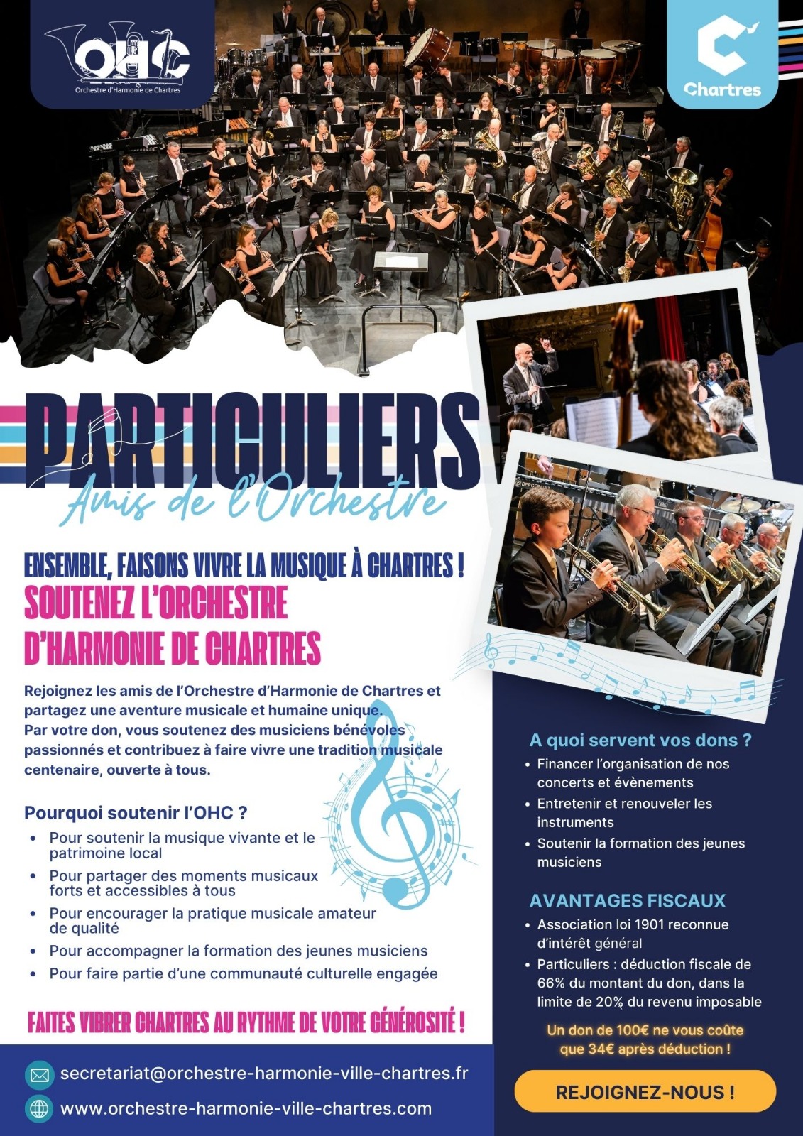 L’orchestre d’harmonie de Chartres est une association reconnue d’intérêt général. À ce titre, votre don est déductible d’impôt :